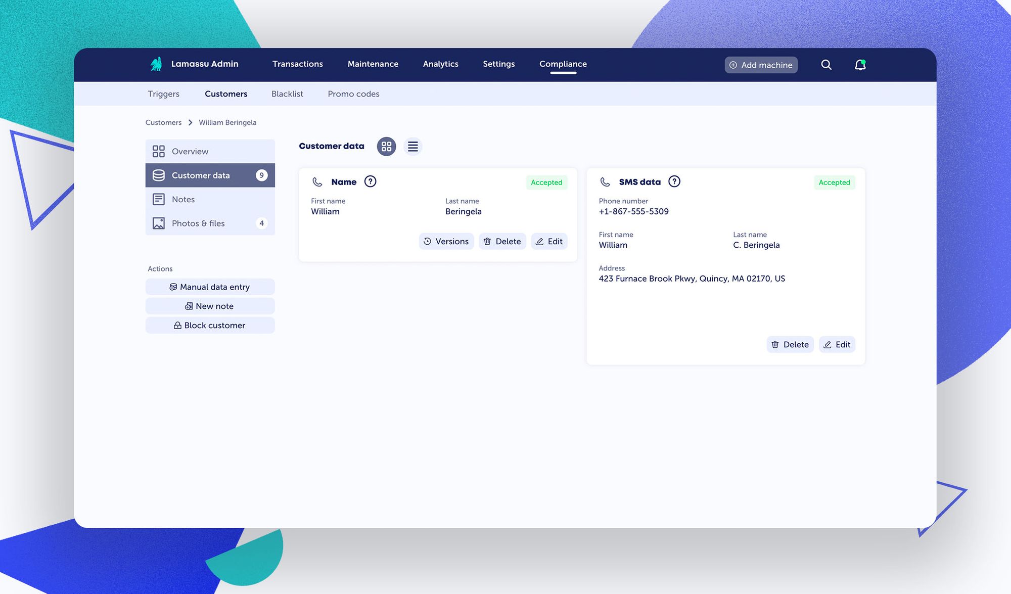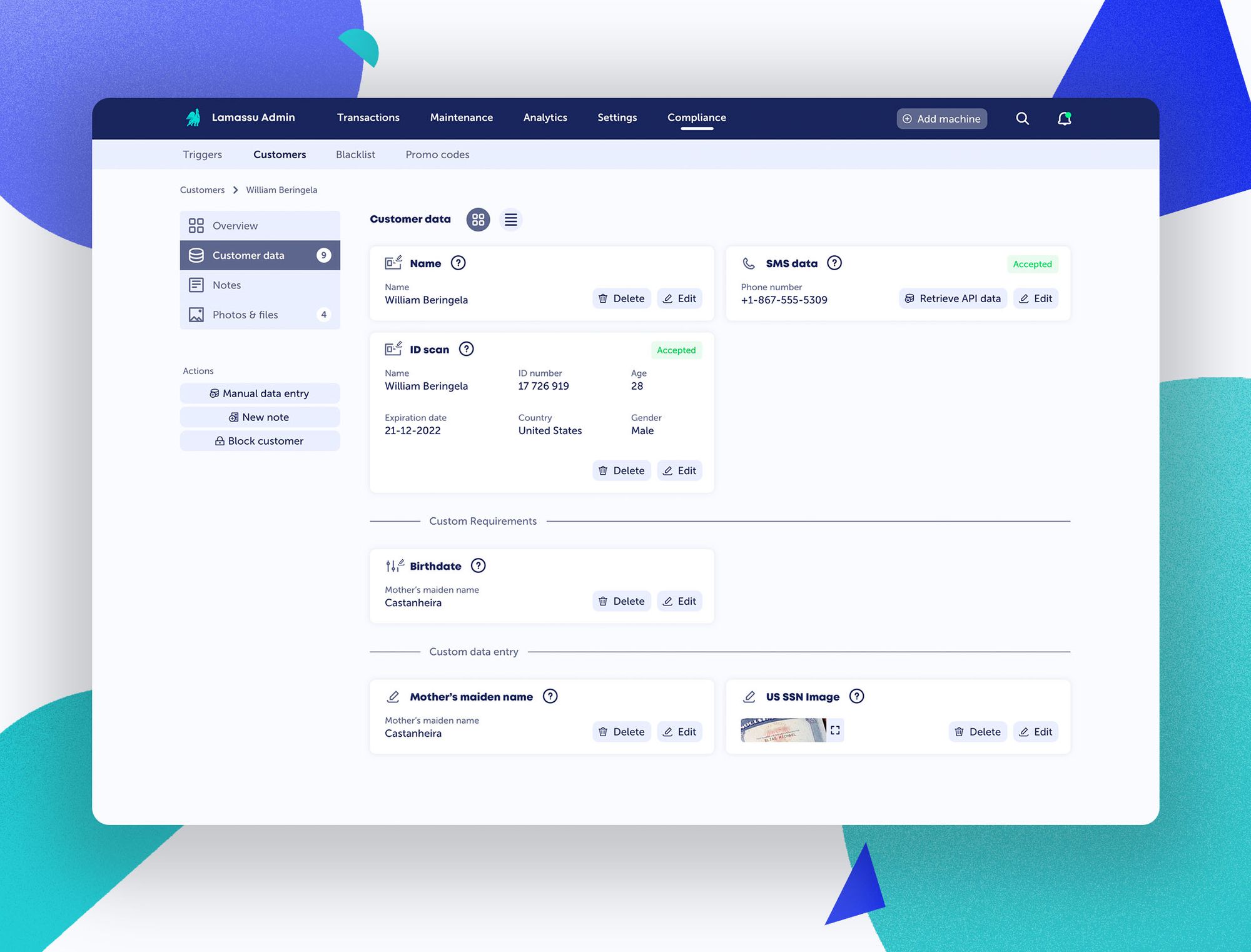 Within the admin, all existing customer information can now be edited by operators, allowing you to update customer data, upload new ID photos, create notes and more.